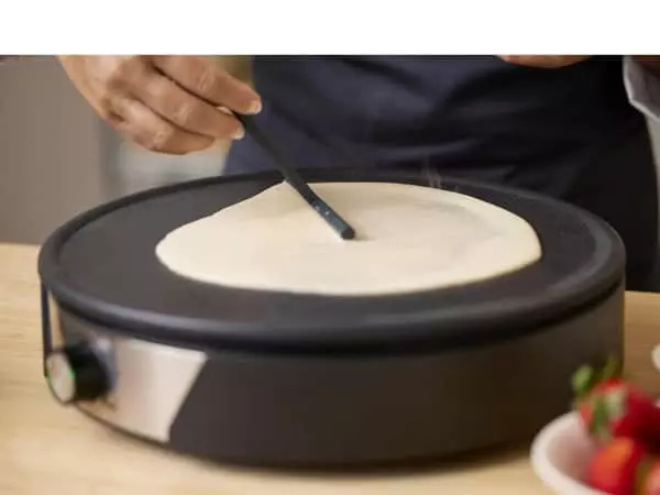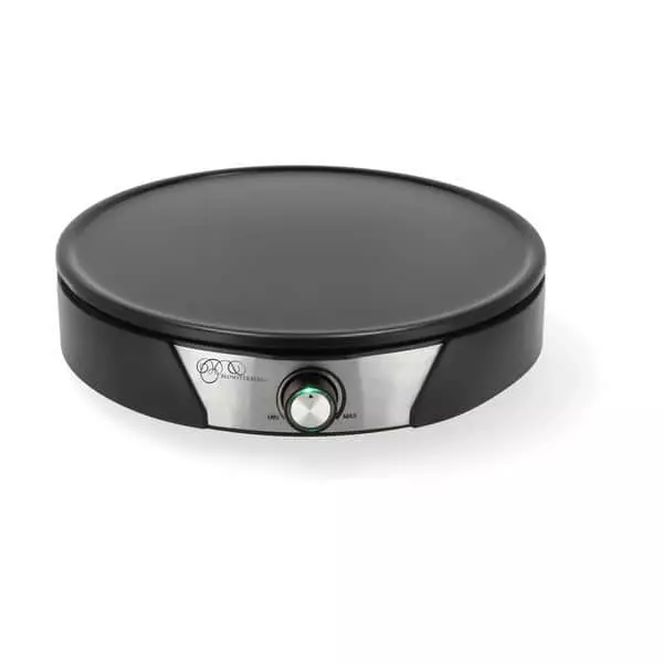 En lampe lyser rødt, når panden varmer op, og grønt, når den er varm. Du har mulighed for at regulere temperaturen på crepepanden. Selve panden kan tages af og vaskes i opvaskemaskinen efter brug.