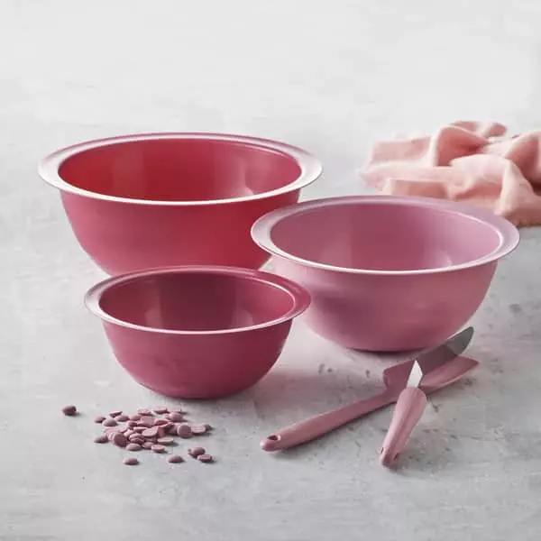Gå i krig med lækre kagedeje og smagsfyldte cremer og bland det hele i de smarte røreskåle fra by Ditte Julie. Skålene har tre forskellige størrelser, som kan placeres oveni hinanden, så det sparer på pladsen i skufferne. Derudover tåler skålene både fryser, mikroovn og opvaskemaskine.