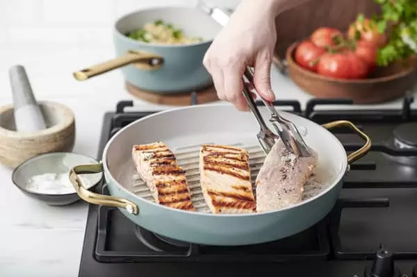 Grill laksebøffer eller sprødt spidskål på denne pande fra Greenpan, der steger til perfektion.