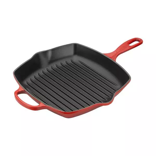 Få velsmagende grillstriber på bøfferne med Le Creuset grillpande. Uanset om det er gråvejr eller grillvejr, så er den rillede overflade perfekt til tunbøffer, laksebøffer, rejer, grøntsager eller saftig kylling. Støbejern er kendt for at være et af de bedste materialer til madlavning, da varmen fordeles jævnt og ensartet. Samtidig holder støbejernet på varmen og køler ikke ned, når du tilføjer madvarer. På den måde får grøntsagerne det perfekte bid og bøffen en dejlig stegeskorpe. Tåler ovn, grill og opvaskemaskine. Velegnet til alle komfurtyper – også induktion. Materiale: emaljeret støbejern. Farve: cerise. Grillpanden måler 26 x 26 cm. Le Creuset yder livstidsgaranti på støbejernsprodukter.