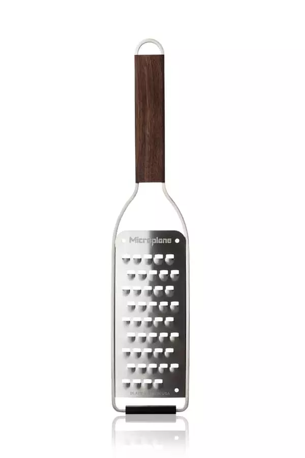 Master serien kombinerer Microplanes velkendte kvalitet med et håndtag i olieret valnøddetræ, som giver rivejernet et organisk og eksklusivt udtryk.