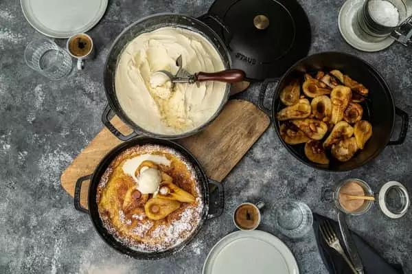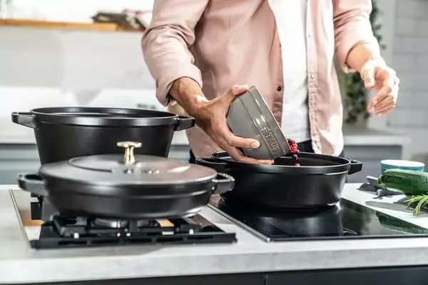 Elsker du at eksperimentere i køkkenet? Så er den klassiske støbejernsgrydesæt fra Staub giver dig smagfulde madoplevelser takket være lågets specielle nedbørseffekt og knop-struktur, da dampen fordeler sig over maden under hele tilberedningen.